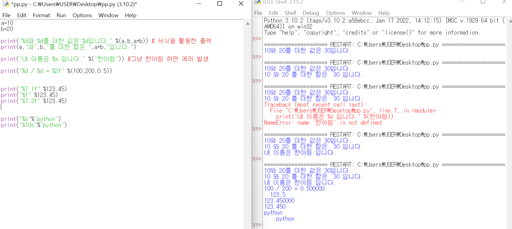 - print( " 3 " + 4 ) ---> ์ค๋ฅ ๋ฐ์