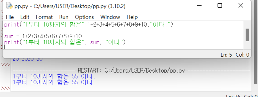- ๋ชจ๋ํฐ์ ์ถ๋ ฅํ๊ณ ์ ํ๋ ๋ฐ์ดํฐ๋ค์ ์ฝค๋ง๋ฅผ ์ด์ฉํ์ฌ ๊ตฌ๋ถ, ์ถ๋ ฅํ ์ ์๋ค.