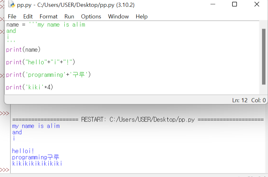 - ์ฌ๋ฌ ์ค ์ ๋ ฅํ๊ธฐ ์ํด์๋ ์์ or ํฐ ๋ฐ์ดํ 3๊ฐ๋ฅผ ์ฐ์์ผ๋ก ๋ฌธ์์ด ์, ๋ค์ ์ฌ์ฉํ๋ฉด ๋๋ค.