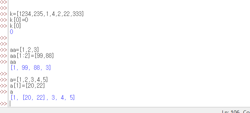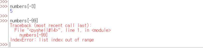 11. ๋ฆฌ์คํธ์ ๋ฒ์ ์ ๊ทผ + ๋ฆฌ์คํธ ๊ฐ ๋ณ๊ฒฝ + ๋ฆฌ์คํธ ์กฐ์ ํจ์์ ๋ฆฌ์คํธ ์ญ์