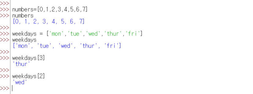 : ๋ฆฌ์คํธ ์์๋ ์ฒจ์๋ฅผ ํตํด ์ ๊ทผํ๋ค. ( ๋จ, ์ฒจ์๋ ํญ๋ชฉ ๊ฐ์๊ฐ 0์ด์์ ๊ฐ์ด๊ธฐ์ 0๋ถํฐ ์์ํ๋ค. )