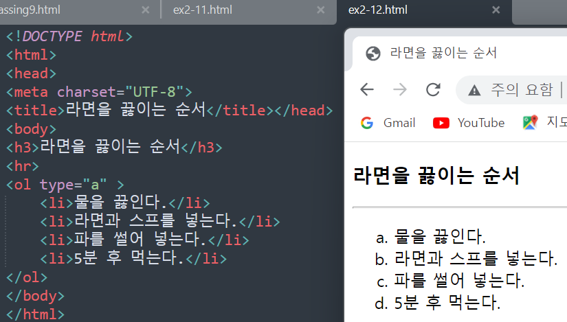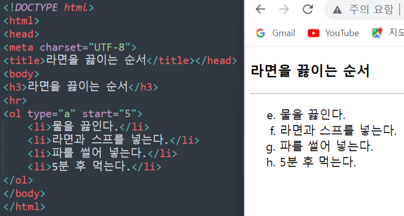 # <ol> ๋ก ๋ผ๋ฉด ๋์ด๋ ์์ ๋์ด