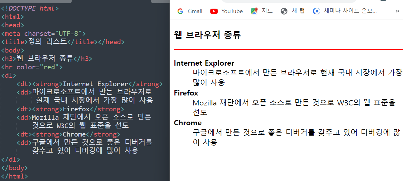 - ์ ์ ๋ฆฌ์คํธ : <dl> ~ </dl>