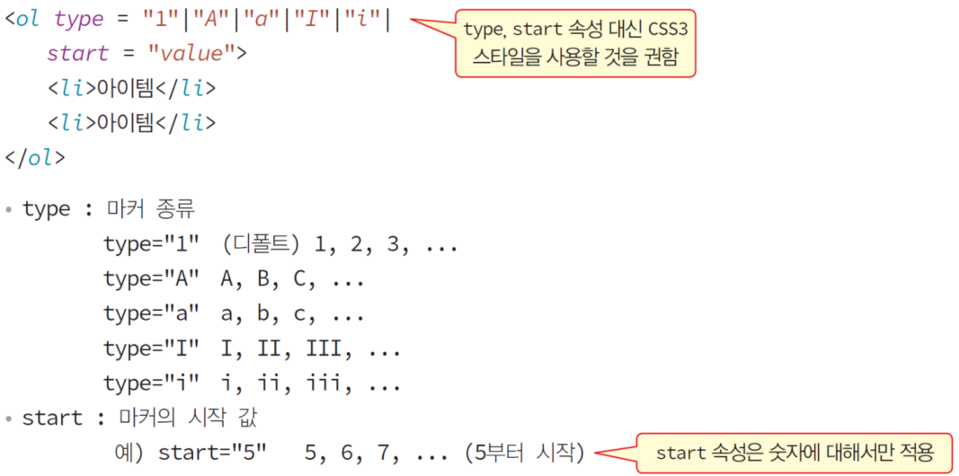 - ์์ ์๋ ๋ฆฌ์คํธ : <ol> ~ </ol>