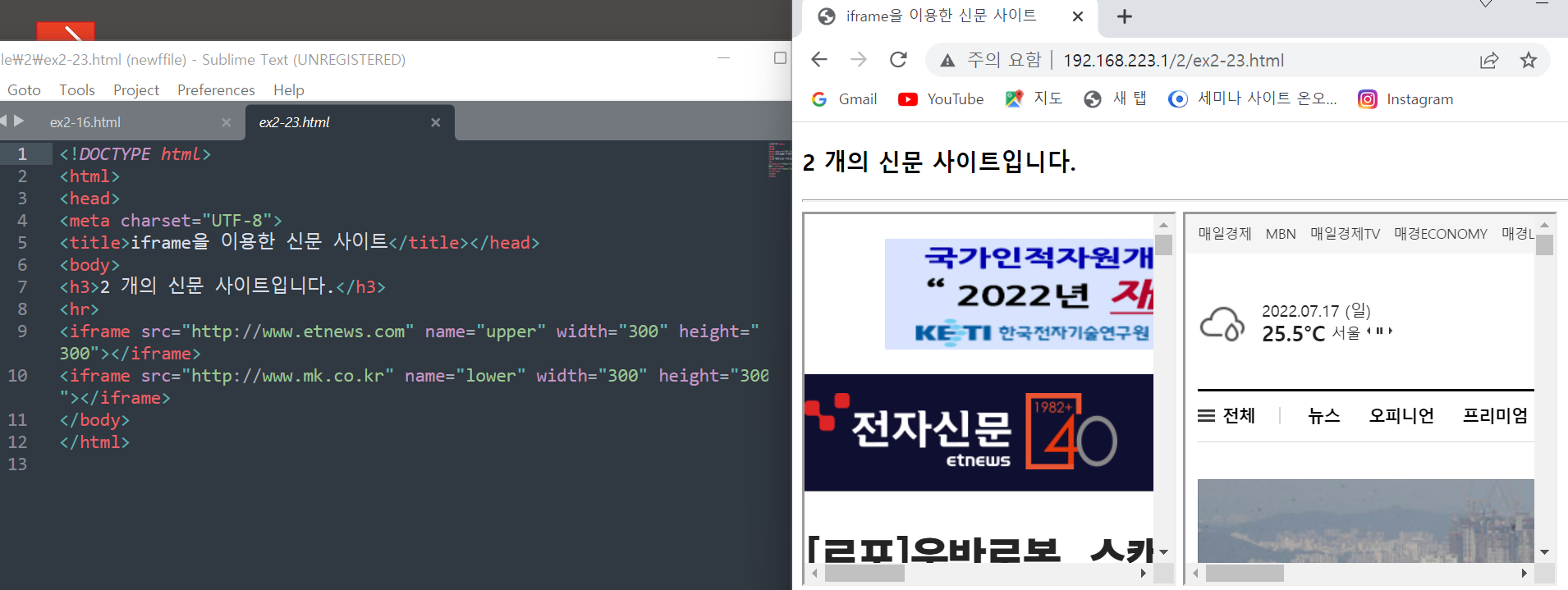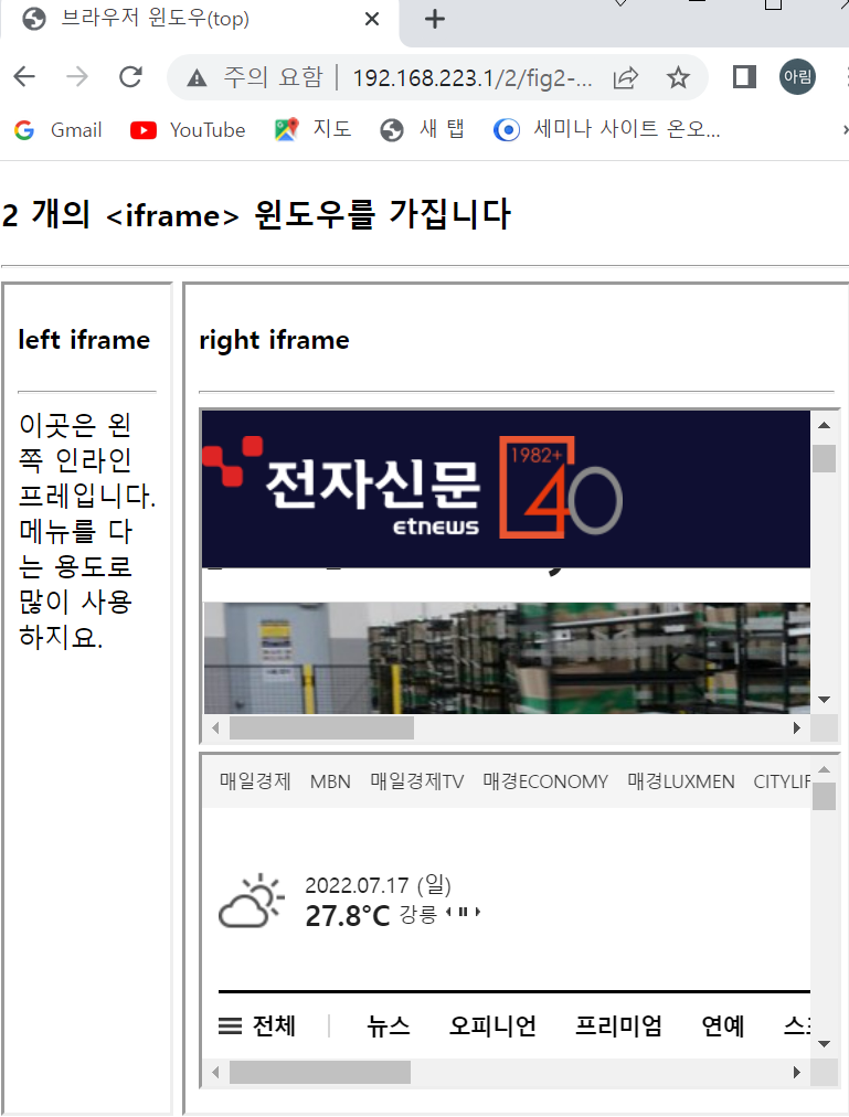 # <iframe> ํ๊ทธ๋ฅผ ์ฌ์ฉํ์ฌ 2๊ฐ์ ์ ๋ฌธ ์ฌ์ดํธ ๋ด์ฅํ๊ธฐ