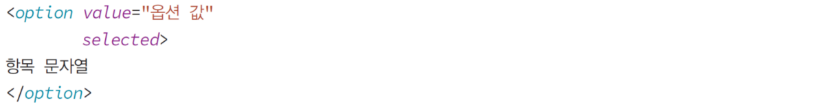 -> <option> ํ๊ทธ๋ก ํญ๋ชฉ ํ๋ ํํ