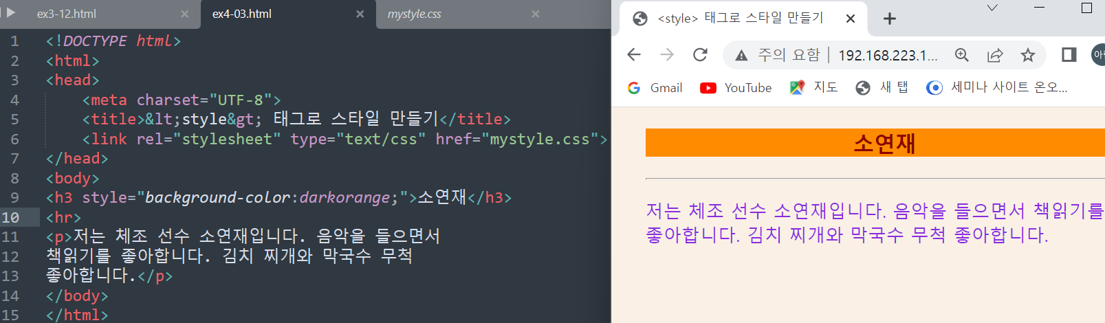 : <style></style> ํ๊ทธ์ ์คํ์ผ ์ํธ ์์ฑ