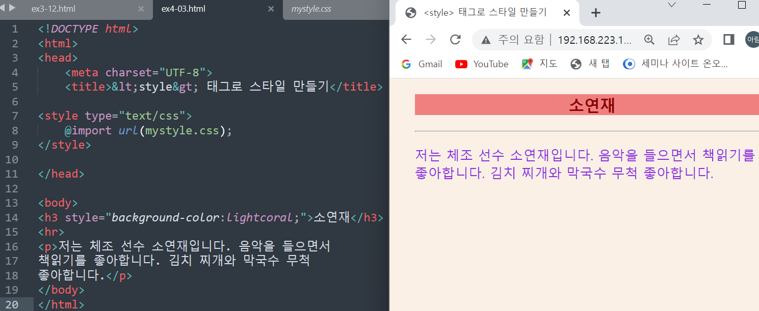 14. CSS3 ์คํ์ผ ์ํธ + <style> ํ๊ทธ + style ์์ฑ + <link> ํ๊ทธ์ @import