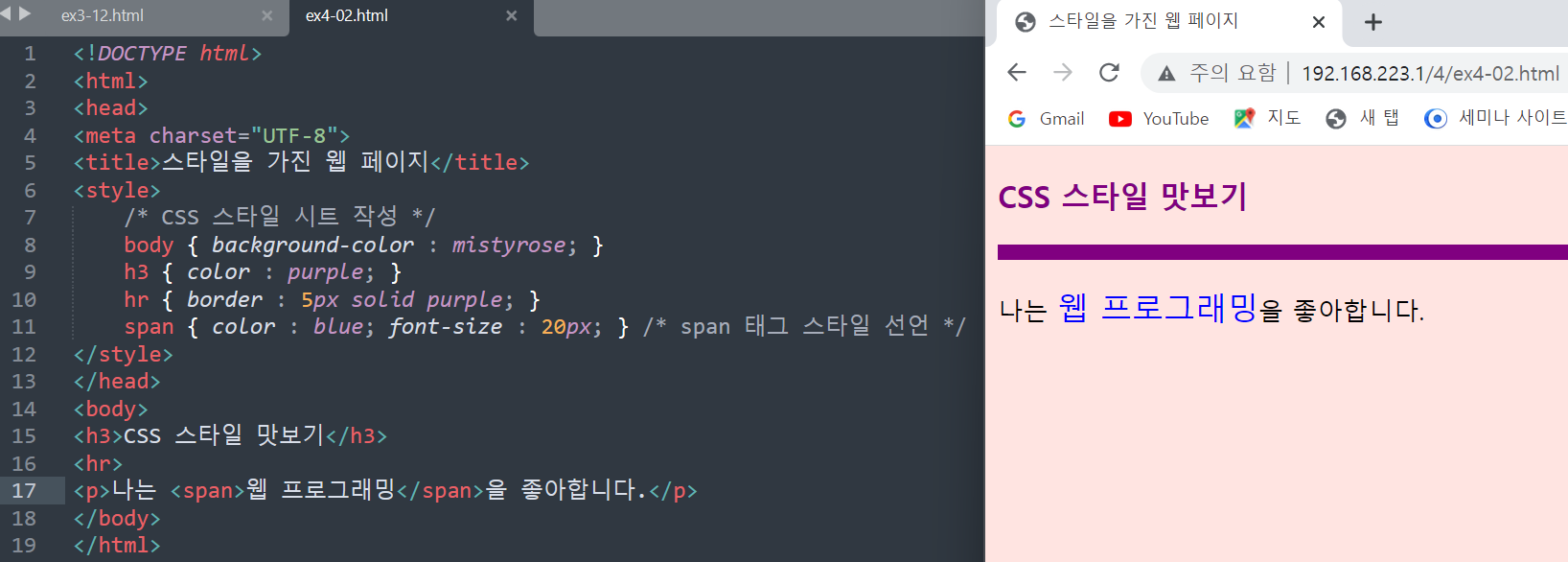 - <style> ํ๊ทธ์ ์์ฑ๋ ์คํ์ผ ์ํธ๋ ์น ํ์ด์ง ์ ์ฒด์ ์ ์ฉ๋๋ค.